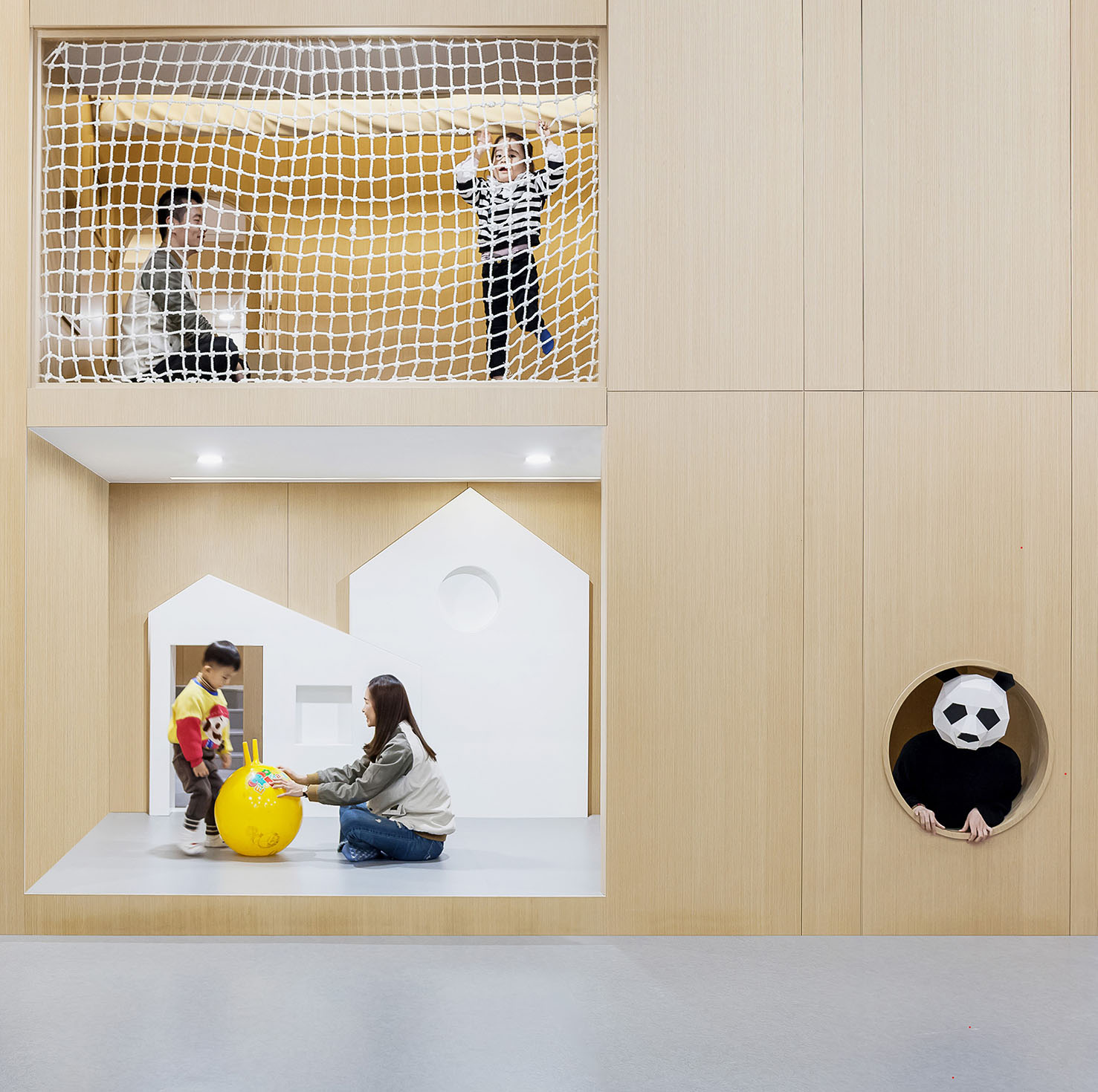 孩子们才是空间主角,橡木色小房子里藏着不同的世界等待孩子们去探索与发现。房子不仅是空间造型的体现,同时也是孩子眼中家的形态,给予孩子如家般的安全感。